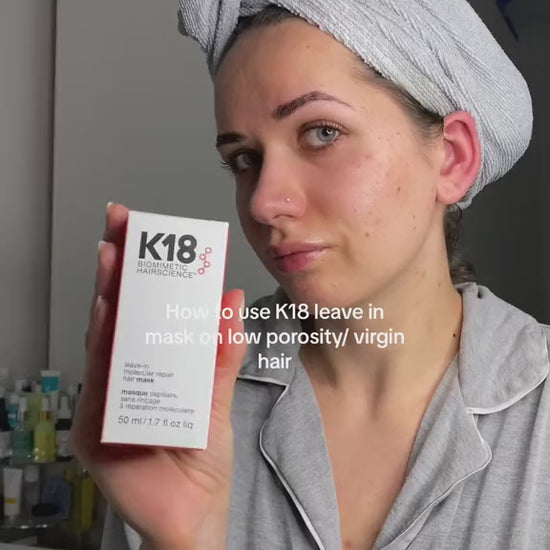 قناع الشعر K18 Biomimetic Hairscience Leave-In Molecular Repair Hair Mask – علاج احترافي للشعر يستخدم تقنية الببتيد المبتكرة لإصلاح الشعر التالف على المستوى الجزيئي، واستعادة القوة والنعومة والمرونة.